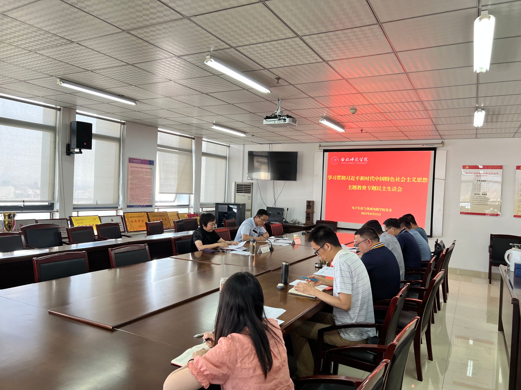本网讯 根据主题教育工作安排,8月31日上午,电子信息与集成电路公司党委召开学习贯彻习近平新时代中国特色社会主义思想主题教育专题民主生活会,公司党委副书记梁立昌、组织部副部长余军到会指导。会议由公司党委副书记、经理张忠祥主持。