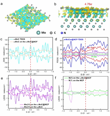 α-MoC量子点与Mo-N-C位点之间电子转移计算