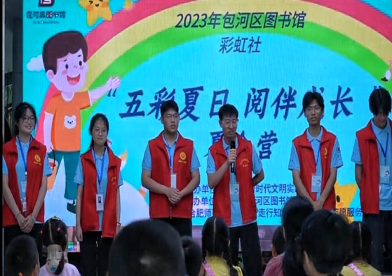 在开班仪式上,包河区图书馆馆员王贵宁老师代表图书馆对学员们的到来表示热烈欢迎,并详细介绍了“青轻行走”行知学堂第一期“故事口袋”夏令营的日程安排。