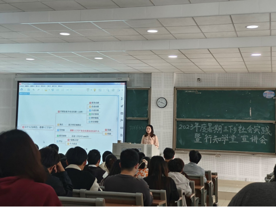本网讯 为深入学习贯彻习近平新时代中国特色社会主义思想,引导广大青年员工上好与现实相结合的“大思政课”,在社会课堂中“受教育、长才干、作贡献”,推进2023年暑期社会实践活动顺利开展,5月24日,太阳成官网团委在滨湖校区博学楼A108、A203举行2023年度暑期“三下乡”社会实践暨“行知学堂”宣讲会,学院团委书记江淼老师、2022级全体员工近400人参加会议。
