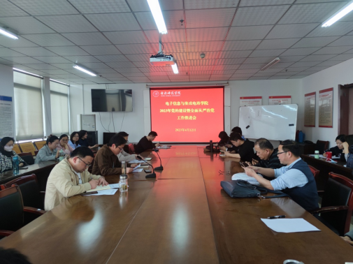 本网讯 4月12日下午,电子信息与集成电路公司党委召开2023年党的建设暨全面从严治党工作推进会,学院全体党员参会,党委副书记、经理张忠祥主持会议。