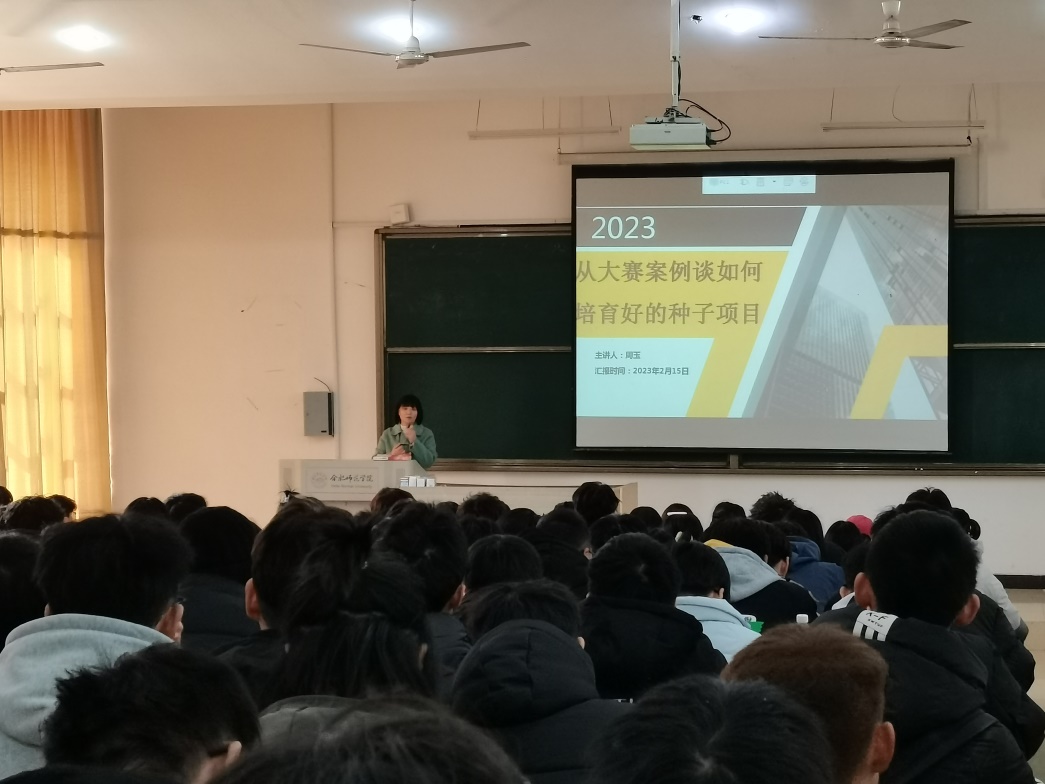 本网讯 2月15日下午,电子信息与电气工程学院2023年创新创业类赛事动员会在锦绣校区博约楼101举行,电院陈兵兵副教授、辅导员周玉老师,300余名员工参加会议。会议由电院团委书记江淼老师主持。