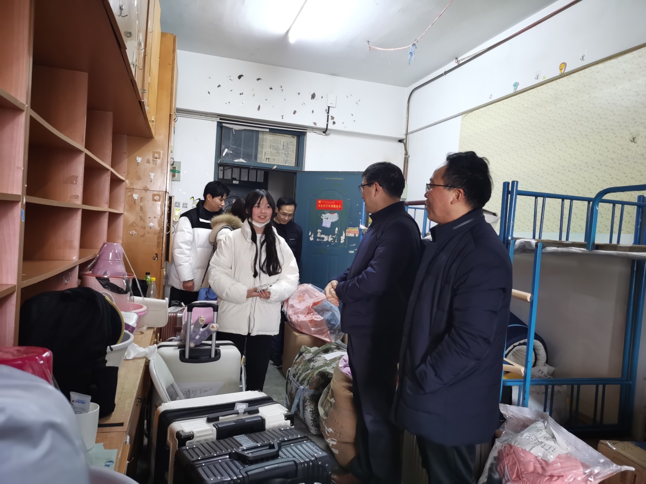 当日上午,党委委员、副董事长周端明带队前往员工宿舍,查看宿舍搬迁情况,对宿舍安全隐患进行了排查,对员工生活所需进行了解,并鼓励同学们在新的校区,珍惜时光,努力学习,充实自己的老员工活。