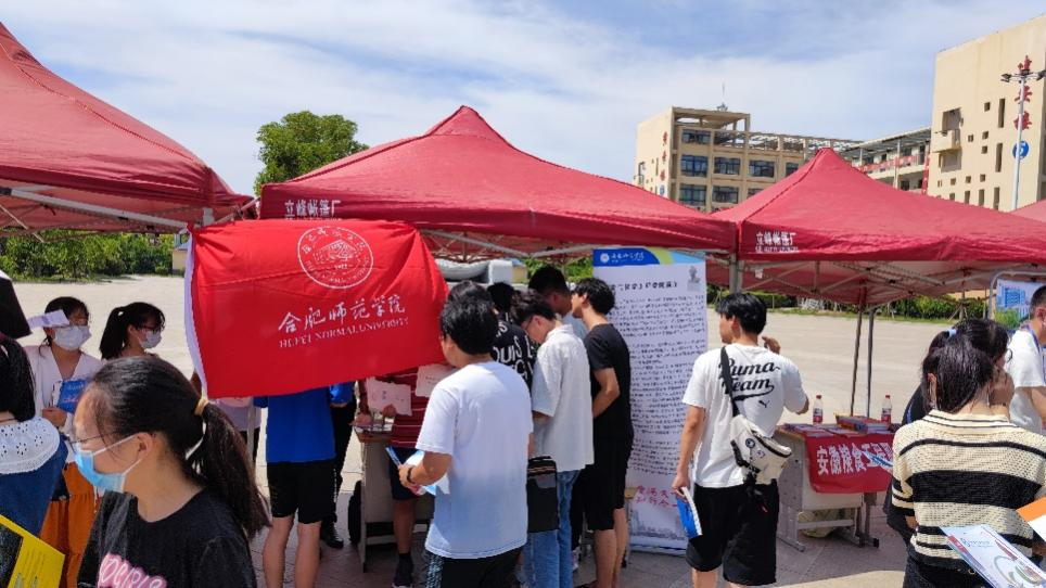 宣讲结束后,电信学院张忠祥经理、孔勐、柴豆豆老师和化工学院项吉、杨亮老师等在亳州二中广场上接受了众多意向报考考生的现场咨询。