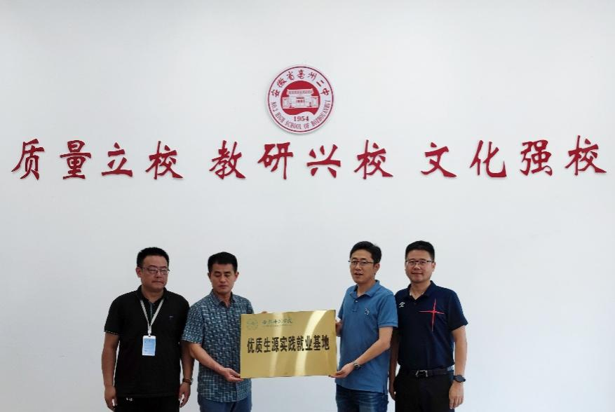 本网讯 为助力本科招生工作,扩大学校社会影响,吸引优质生源,落实学校2022年普高招生宣传工作要求,6月25日,电子信息与电气工程学院经理张忠祥一行五人来到亳州市第二中学(省示范高中)、第十八中学进行招生宣讲,同时在亳州二中进行优质生源地挂牌仪式。