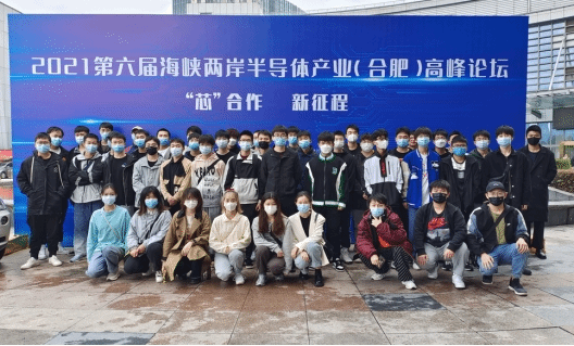 本网讯 10月22日,以“‘芯’合作 新征程”为主题的2021第六届海峡两岸半导体产业(合肥)高峰论坛在合肥举行。本次论坛由国务院台湾事务办公室经济局、中国半导体行业协会指导,合肥市人民政府、安徽省发展和改革委员会、安徽省经济和信息化厅、安徽省人民政府台湾事务办公室主办,合肥市发展和改革委员会、合肥市经济和信息化局、合肥市人民政府台湾事务办公室、安徽省半导体行业协会、合肥市半导体行业协会承办,合肥高新技术产业开发区、合肥经济技术开发区、合肥新站高新技术产业开发区、合肥国家芯火双创平台、合肥市产业投资控股(集团)有限公司协办。公司电子信息与电气工程学院微电子系教师和2019级微电子科学与工程全体员工参加本次论坛并观摩学习。