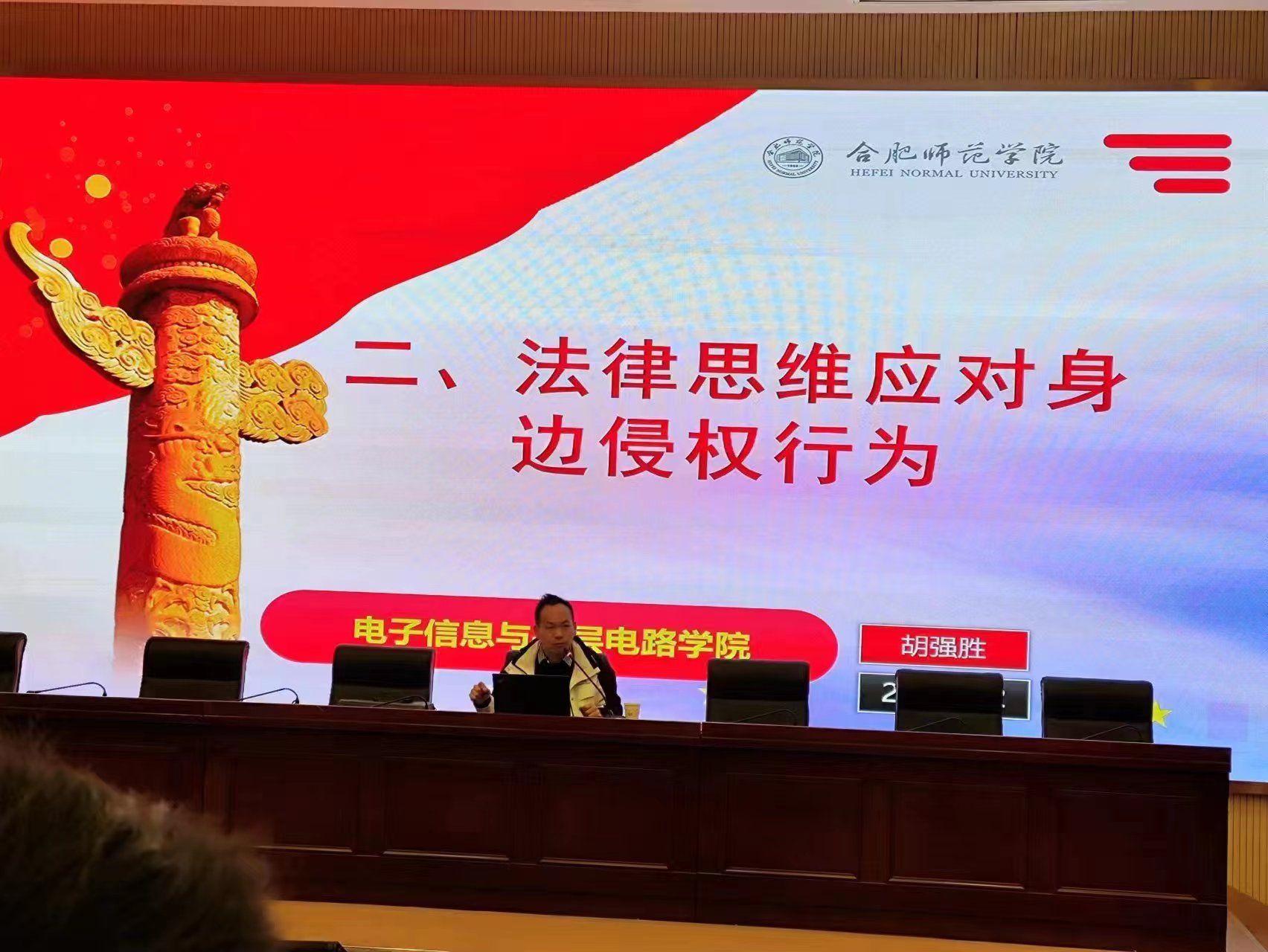 本网讯 为深入学习贯彻习近平总书记关于宪法学习宣传教育的系列重要指示精神,弘扬法治精神,12月7日晚,在公司党政办、滨湖办支持下,太阳成官网在滨湖校区学术报告厅为全体大一新生开展“与法同行—做学法守法护法新时代青年”法治教育专题讲座,讲座由滨湖校区综合管理办公室、23级通信工程专业辅导员胡强胜老师主讲。