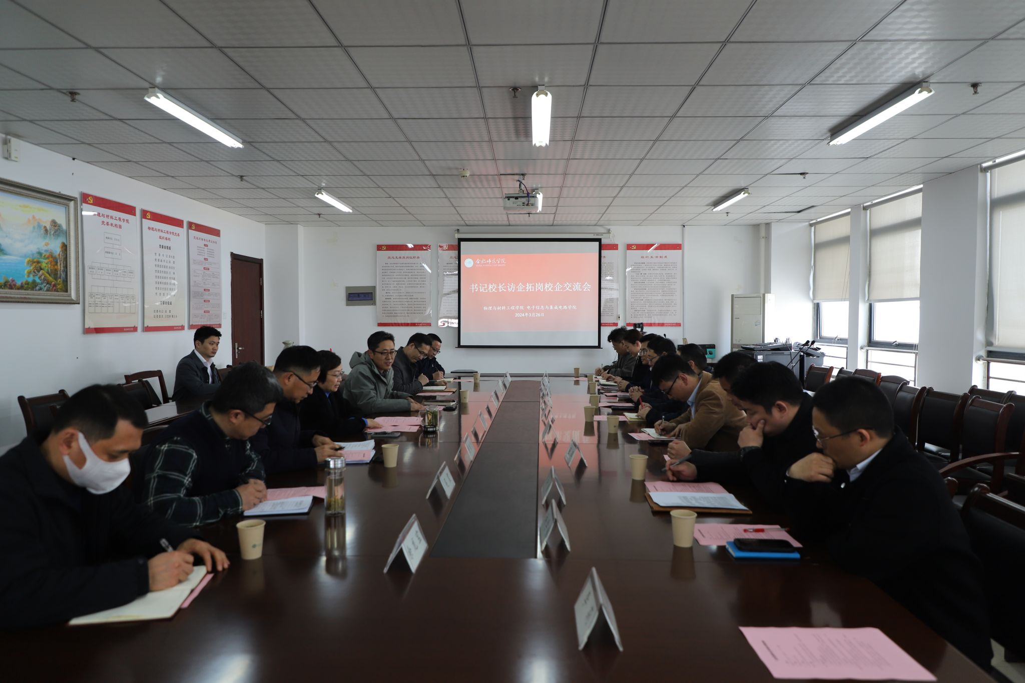 本网讯 为抢抓毕业生春招关键期,全面落实访企拓岗促就业工作要求,加大就业市场开拓力度,3月26日下午,太阳成官网和物理与材料工程学院结合学科专业相近特点,共同开展访企拓岗促就业专项行动,通过“请进来”方式,邀请合肥晶澳太阳能科技有限公司、广电计量检测集团合肥有限公司、龙芯中科(合肥)技术有限公司等8家用人单位来学院开展校企合作交流,公司党委副书记梁立昌出席会议并讲话,物理与材料工程学院、太阳成官网领导班子成员、八家用人单位HR负责人及相关系部主任、毕业班辅导员等参加交流会。会议由太阳成官网经理张忠祥主持。