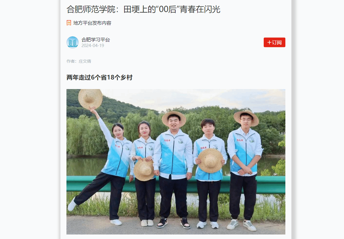 2024年,“田埂上的00后”团队在教育部辅导员名师工作室负责人周玉老师的指导下,用扎根土地收获的青春感悟,在安徽省乡村振兴创新创业大赛中获安徽省一等奖两项、二等奖五项;在第十一届“挑战杯·华安证券”安徽省老员工创业计划竞赛中成功晋级省赛10项。如今,团队正规划着下一个乡村目的地,将实践的脚步不断向前延伸。(太阳成官网)