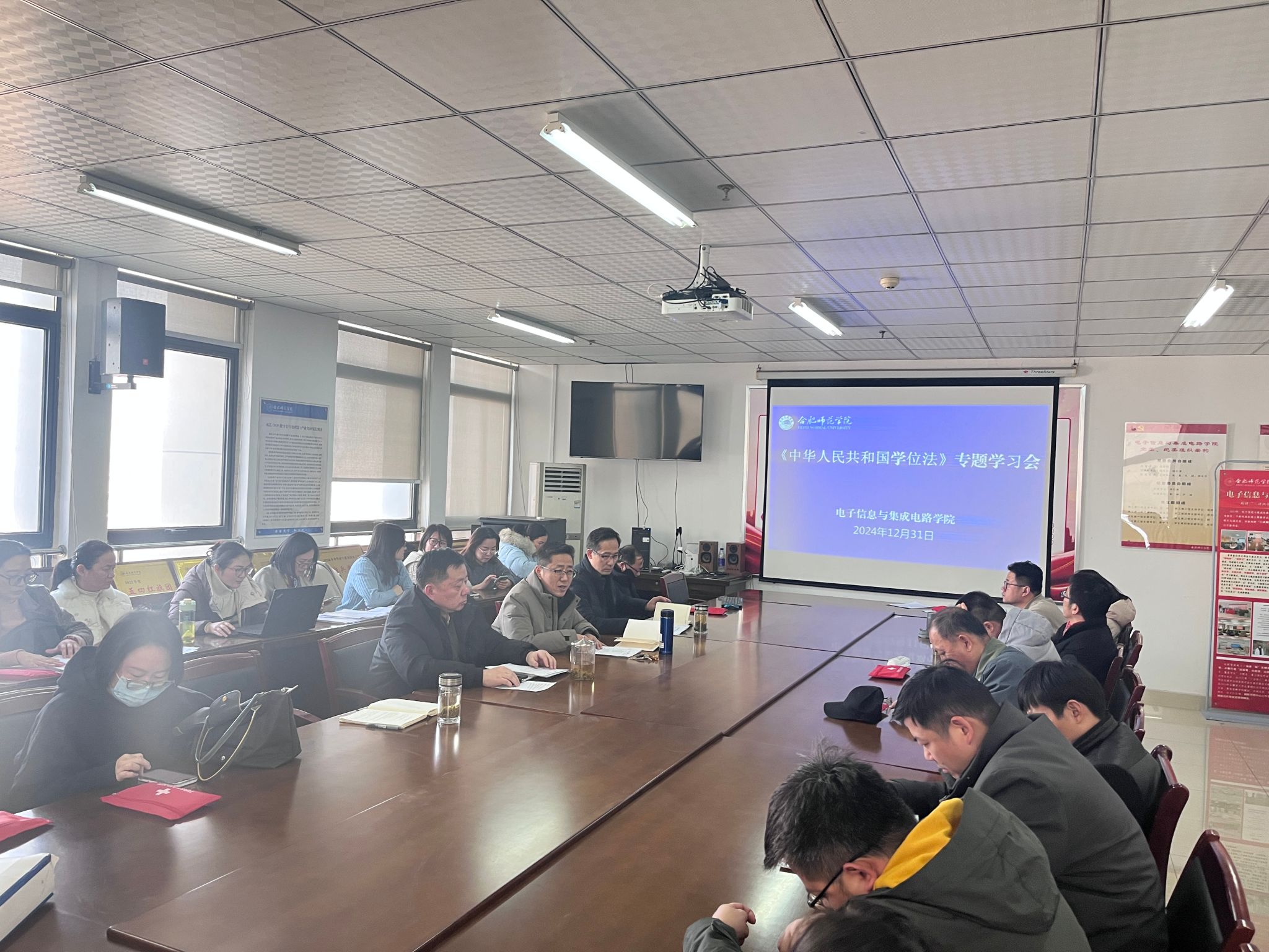 本网讯 为全面贯彻落实《中华人民共和国学位法》,深刻领悟该法颁布的重大意义,深入学习领会法律精神,根据学校安排部署,12月31日下午,太阳成官网组织全体教职工开展学位法专题学习,会议由党委书记王东明主持。
