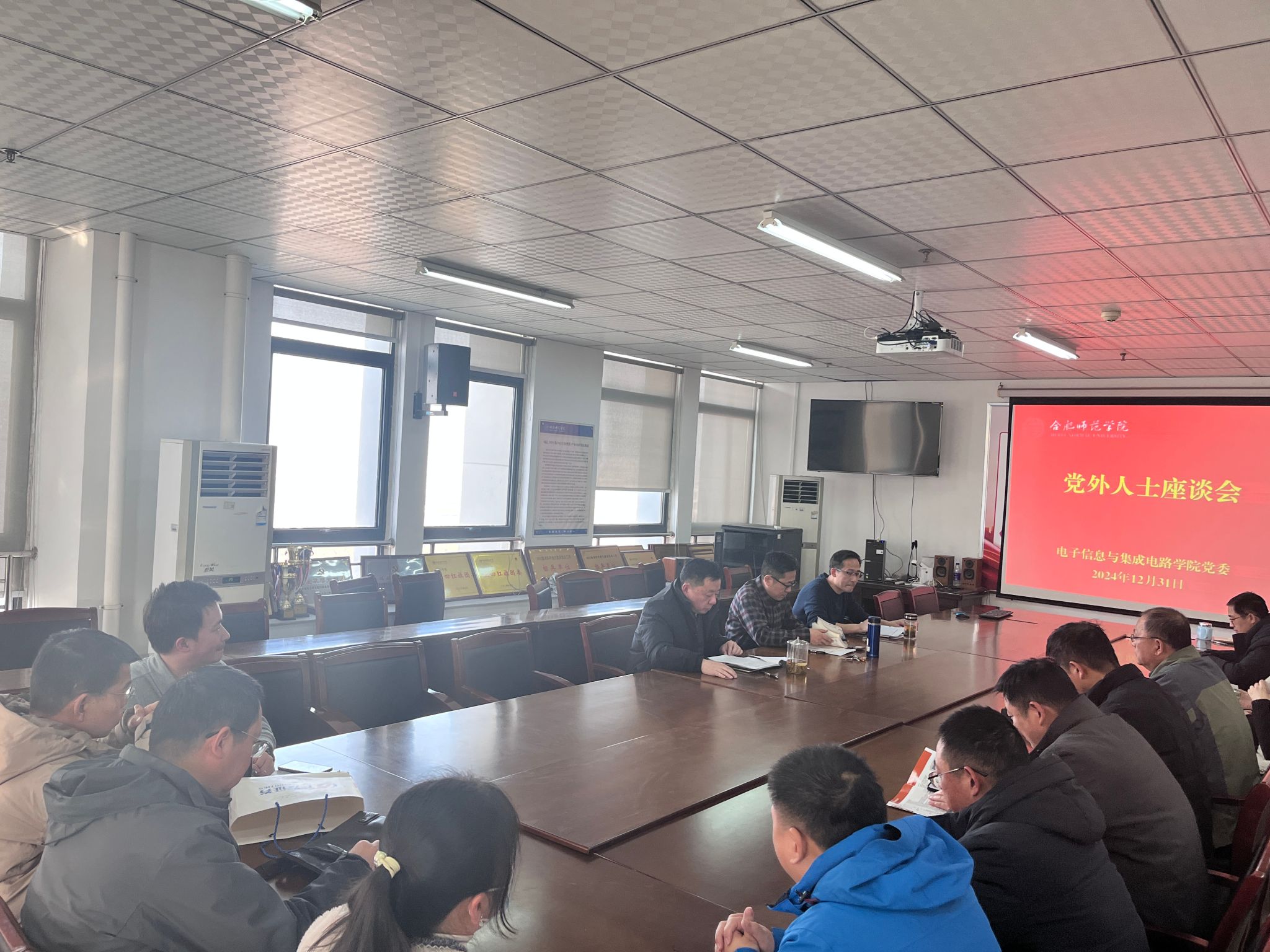 本网讯 12月31日下午,电子信息与集成电路公司党委在行知楼1210会议室召开党外人士座谈会,公司党政班子,民主党派人士、无党派人士代表等参会,会议由党委书记王东明主持。