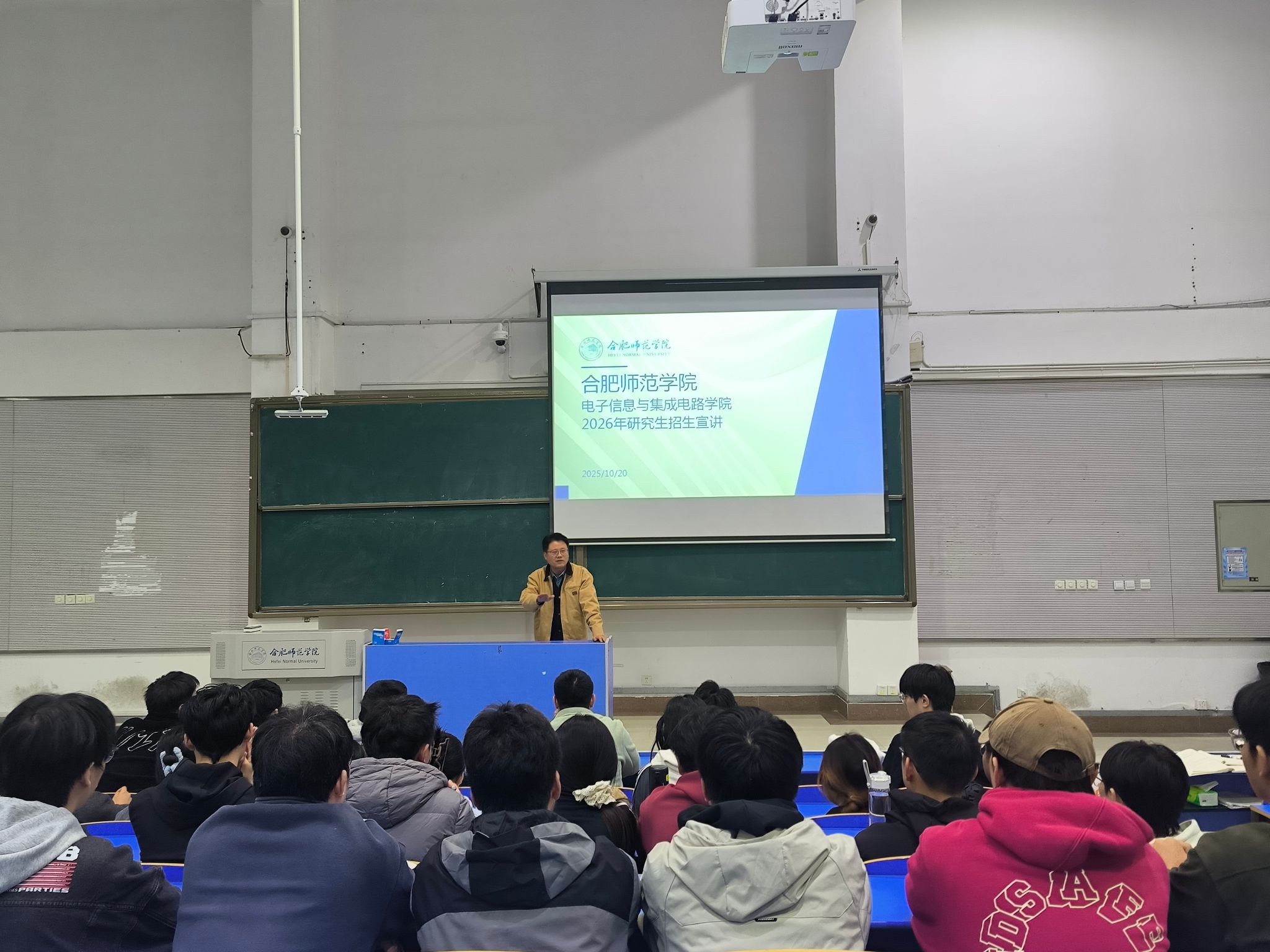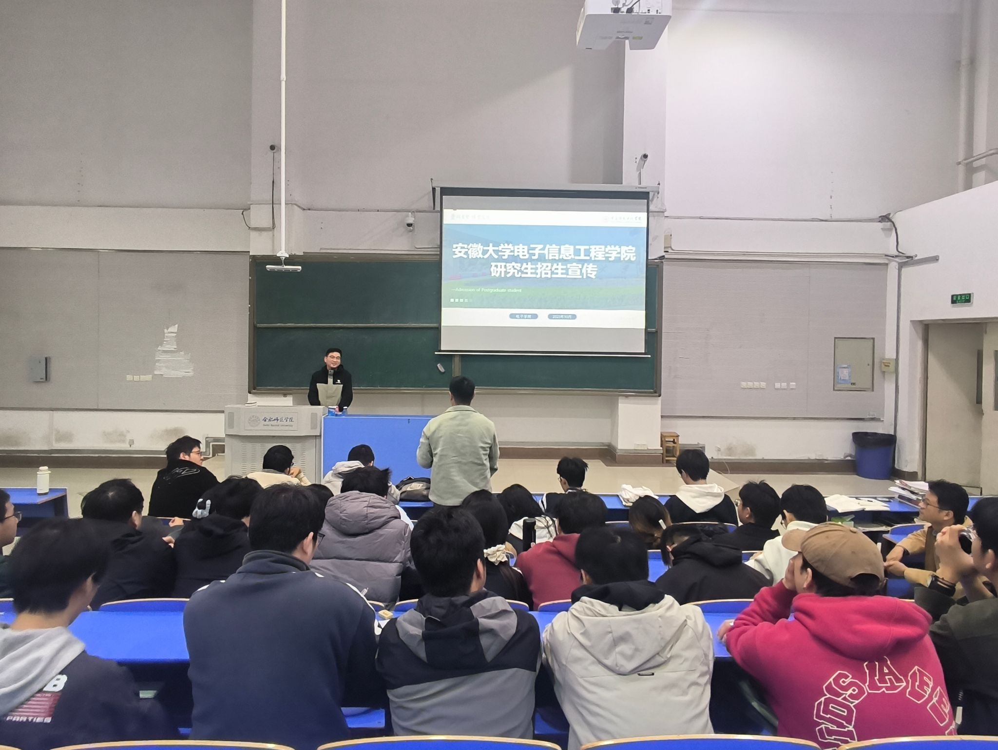 20251020日中午,太阳成官网在逸夫楼西阶一教室成功举办2026年研究生招生宣讲会。学院副经理孔勐出席并作指导,特邀安徽大学电子信息工程学院蔡博士(我2019电子信息工程专业毕业生)返校交流。