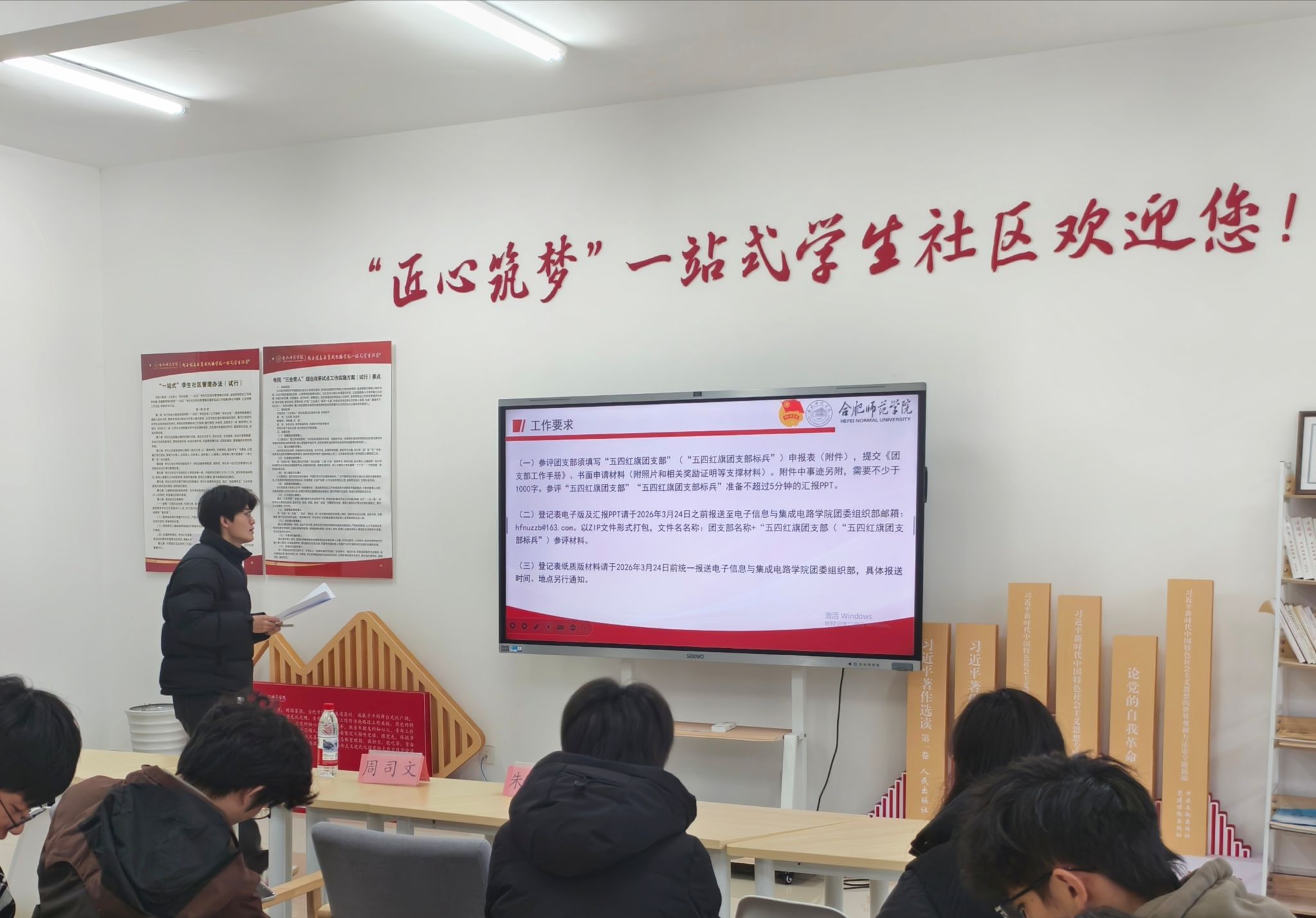 活动最后,学院员工会主席团成员欧阳超就“五四红旗团支部”评选工作进行详细解读,围绕思想建设、组织建设、学风建设、志愿服务等关键维度,明确参评标准、申报流程及注意事项,为各团支部规范化建设、争先创优提供了清晰指引,助力学院基层团组织工作提质增效、再上新台阶。