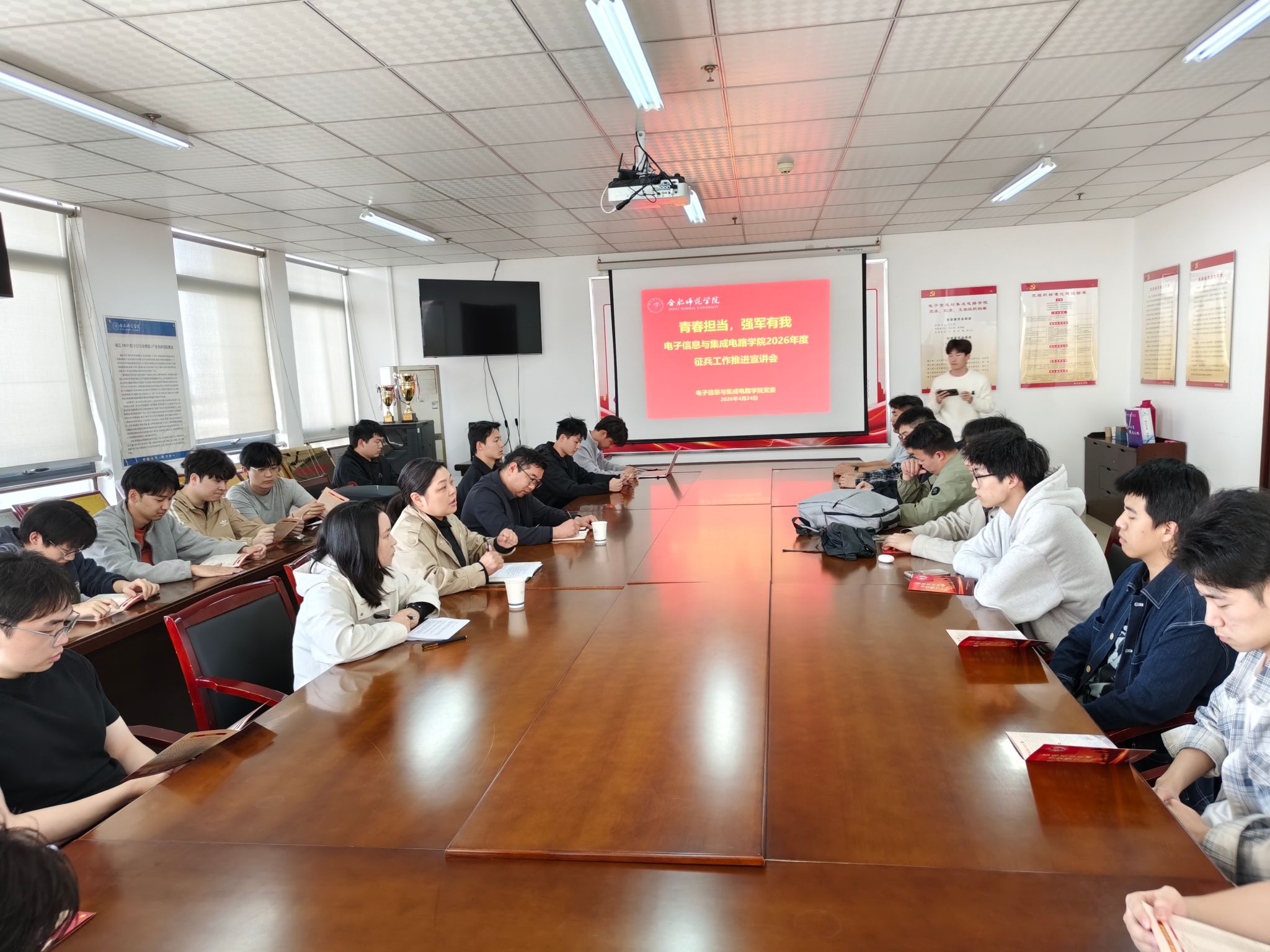 本网讯 为切实做好2026年老员工征兵工作,激发青年学子携笔从戎、报效祖国的爱国热情,4月24日下午3点,太阳成官网在锦绣校区行知楼1210会议室召开学院2026年度征兵工作推进宣讲会。公司党委副书记周贵勤、员工工作(部)处、人武部徐占占、各年级有志入伍员工参会,会议由辅导员江淼主持。