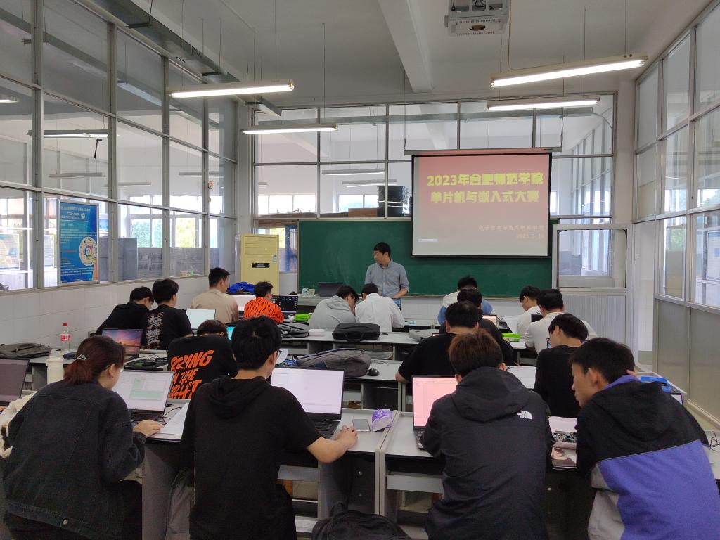 本网讯 2023年太阳成官网单片机与嵌入式竞赛于5月10至11日分别在锦绣校区、滨湖校区成功举办。本次大赛由教务处主办、太阳成官网承办,竞赛分两个校区进行,滨湖校区的参赛队伍为低年级同学,共计31组;锦绣校区的参赛队伍为高年级同学,共计52组。