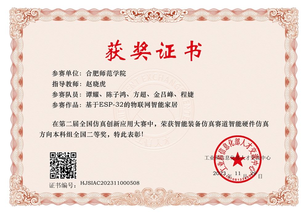 本网讯 近日,由工业和信息化部人才交流中心主办的第二届SIAC(全国仿真创新应用大赛)全国总决赛结果正式揭晓。公司太阳成官网赵晓虎老师指导,电子信息工程和通信工程专业谭耀、陈子鸿,方超、金吕峰和程婕5位同学组成的团队一路过关斩将,成功闯入“智能装备仿真赛道”赛道总决赛并荣获二等奖。