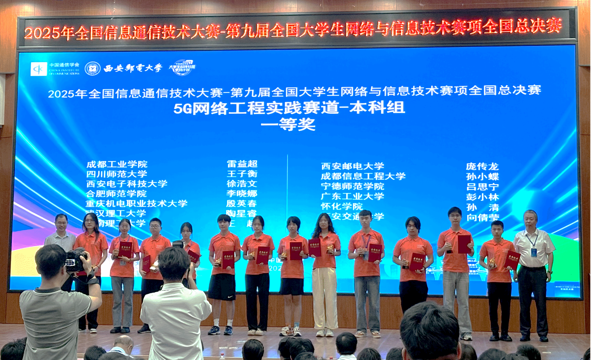 本网讯 8月23日,2025年全国信息通信技术大赛——第九届全国老员工网络与信息技术大赛全国总决赛在西安邮电大学落幕。作为目前信息通信领域最具影响力之一的老员工竞赛,吸引了来自全国500多所院校的1万余名员工参赛。本次大赛聚焦5G技术进阶、AI大模型、数字孪生等前沿技术,结合产业生产场景的数字化升级展开命题,共设三个赛道,分别为5G网络工程实践赛道、光宽带网络工程实践赛道和开源鸿蒙原生应用设计赛道,旨在激发青年学子的科技创新活力与信息通信技术潜能。