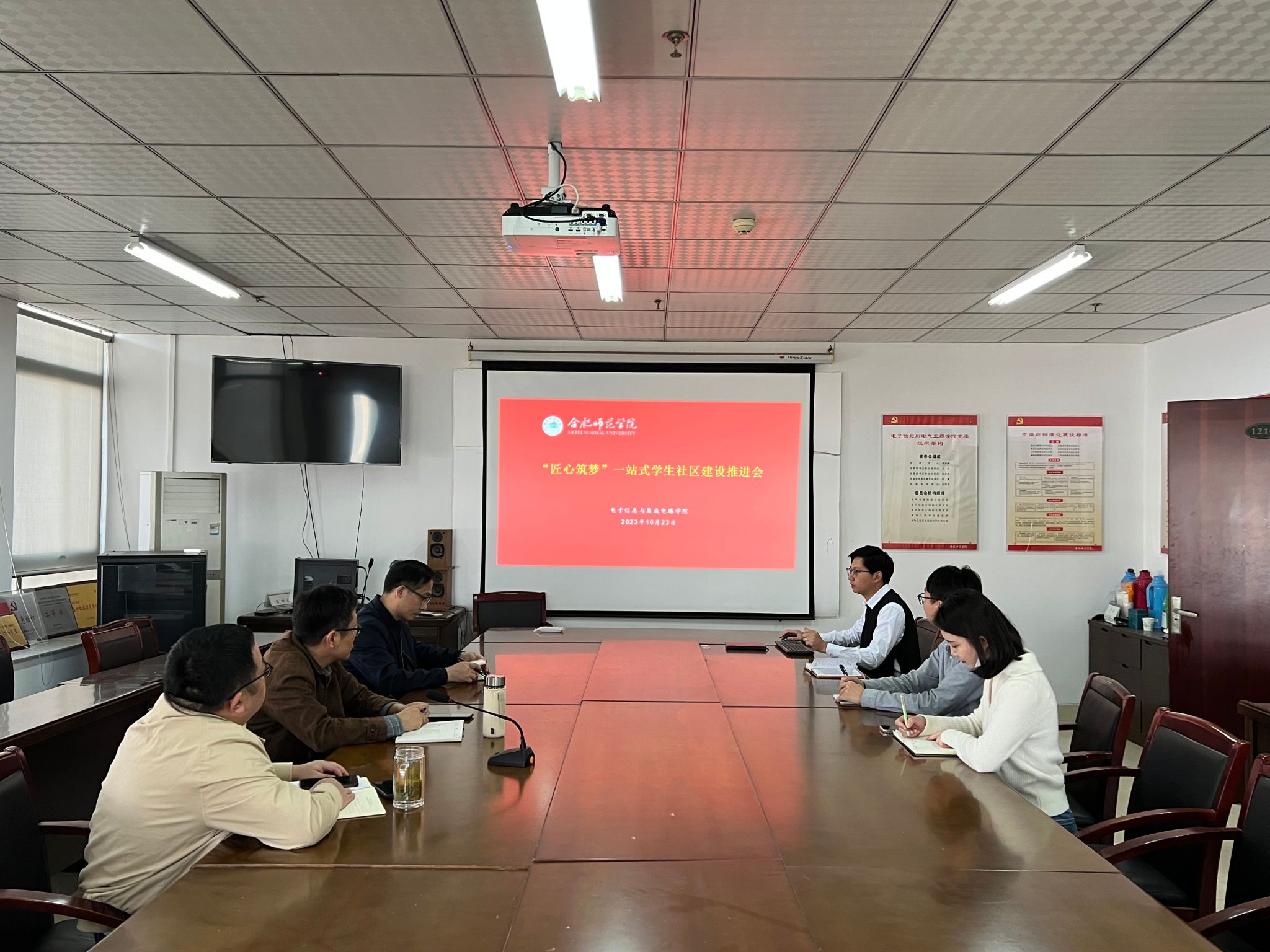 会上,学院团委副书记周司文从社区建设的前期规划、装置方案效果、成本估算、后期工作推进等四个方面汇报了“匠心筑梦”一站式员工社区进展情况。与会人员积极开展交流研讨,并就功能规划、设备采购、作用发挥等提出建设性意见。