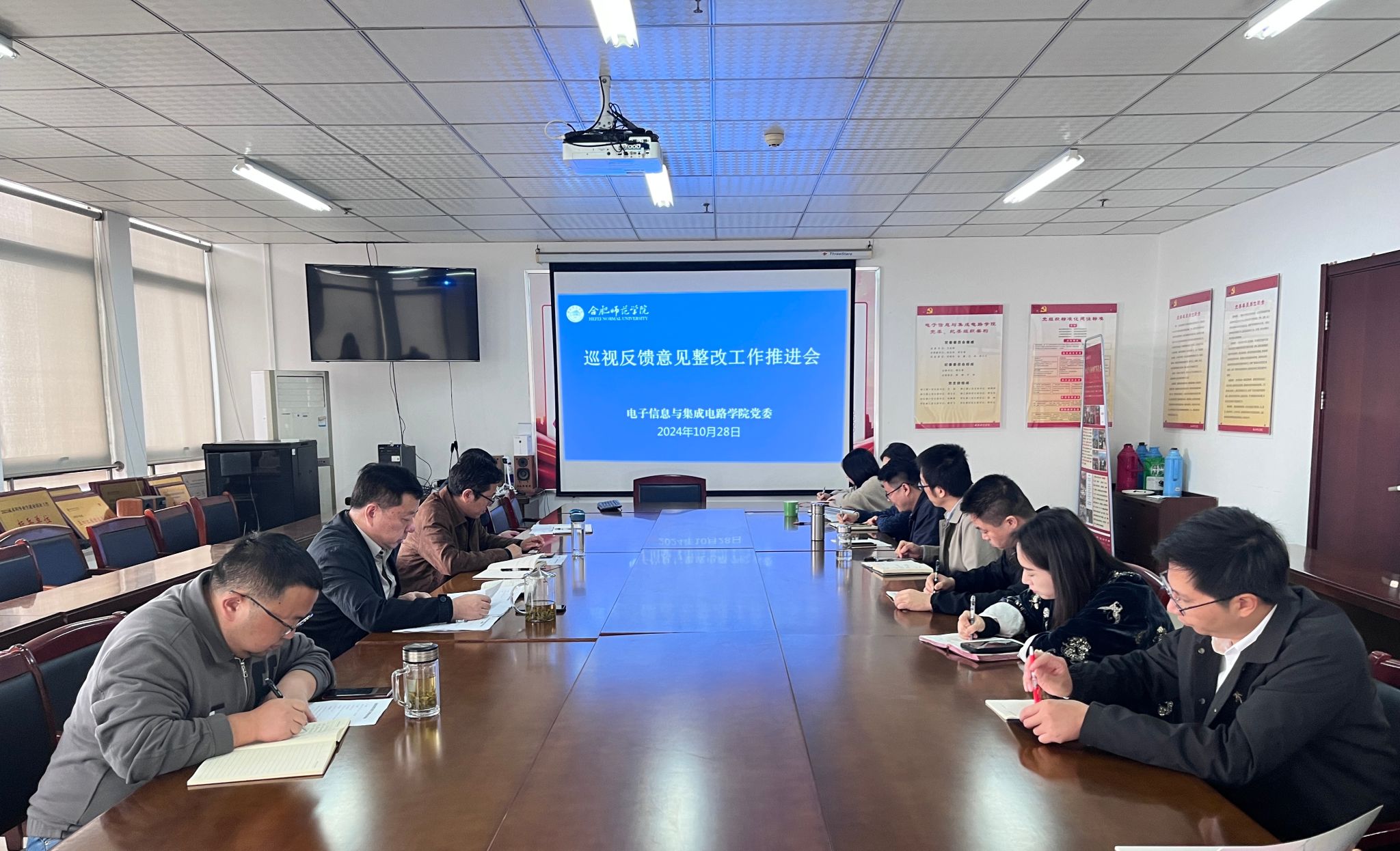 本网讯 10月28日上午,电子信息与集成电路公司党委在行知楼1210会议室召开巡视反馈意见整改工作推进会,公司党委班子全体成员,系部主任、党政秘书、教学秘书、辅导员等参加会议。会议由党委书记王东明主持。