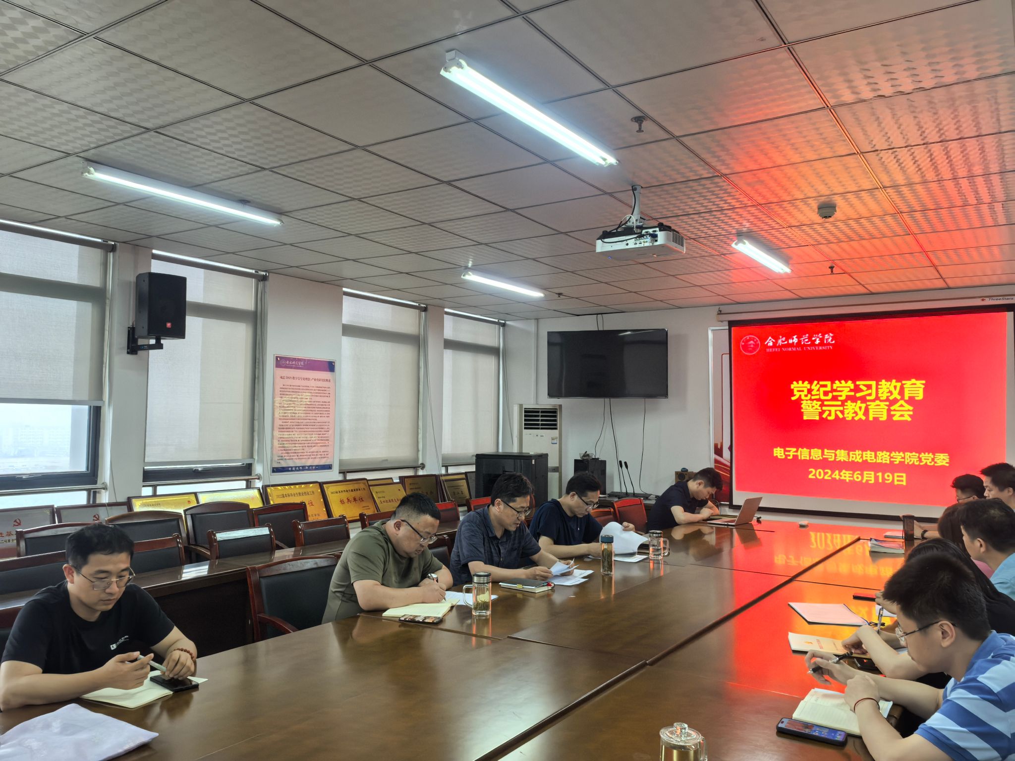 本网讯 6月19日下午,电子信息与集成电路公司党委在行知楼1210会议室召开党纪学习教育警示教育会,公司党委班子全体成员、纪委委员、系部主任、党支部书记、团委书记、党政和教学秘书、全体辅导员参会,会议由党委副书记、经理张忠祥主持。